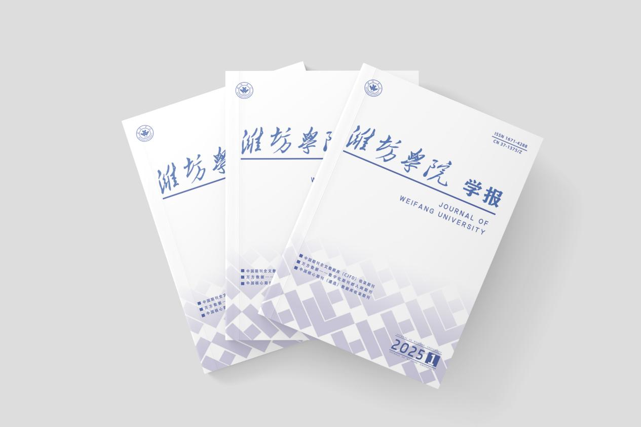 学报封面装饰图案选用了我校校徽logo标志的主视觉元素,将渐变的效果与白色为主的封面底色相结合,使学报外观视觉冲击力更加强烈,画面更加简洁;色调上整体采用潍坊学院校徽logo的标准色,蓝白色调搭配意喻着学术期刊的严谨,学报封面的全新改版,给予读者更优质的审美体验。